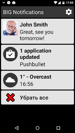 ✓ Приближайте системные уведомления, просматривая их в полноэкранном формате с использованием крупного шрифта