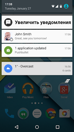 ✓ Выполняйте действия, предложенные в увеличенных уведомлениях, напрямую, не открывая оригинальное приложение