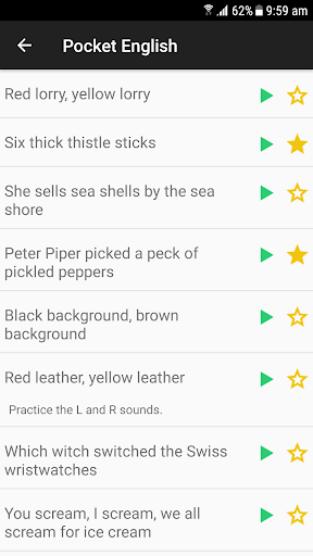Choose your favourite words and phrases, and find everything nicely organised in a favourites list.
