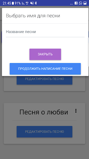 Приложение позволяет сохранять песни. Приложение показывает рифмы во время записи.