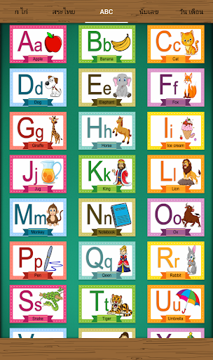 แอพพลิเคชั่นนี้ ออกแบบมาให้ใช้งานง่ายถูกแบ่งแยกเป็นหมวดหมู่ไม่ซับซ้อน โดยมีเมนูและภาพประกอบ พร้อมเสียง สำหรับฝึกท่องตาม ออกเสียงพยัญชนะชัดเจน พ่อแม่ผู้ปกครองหรือคุณครูสามารถที่จะนำมาใช้สอนเด็กๆให้สนุกไปกับการเรียนรู้เรื่องพยัญชนะไทย และ สระ วรรณยุกต์ไทยพยัญชนะภาษาอังกฤษ การนับเลข การท่องสัปดาห์ทั้ง 7วัน กับเดือนทั้ง12ในแอพพลิเคชั่นเดียวกัน
