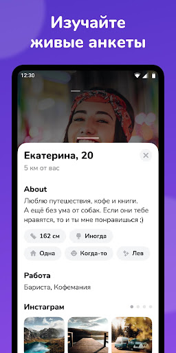 Создайте анкету бесплатно за 5 минут. Представьтесь, расскажите о себе, загрузите любимые фотографии. Добавьте место учёбы или работы. Покажите себя такими, какие вы есть, — при знакомствах это важно. Всё просто, не правда ли?