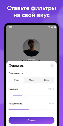 Nuzzle покажет людей рядом с учётом ваших предпочтений по полу и возрасту. Кто-нибудь понравился? Листаете вправо! Если симпатия окажется взаимной, сможете пообщаться и познакомиться поближе. Помните: чем вы активнее, тем больше шансов.