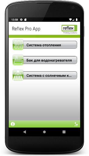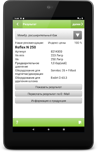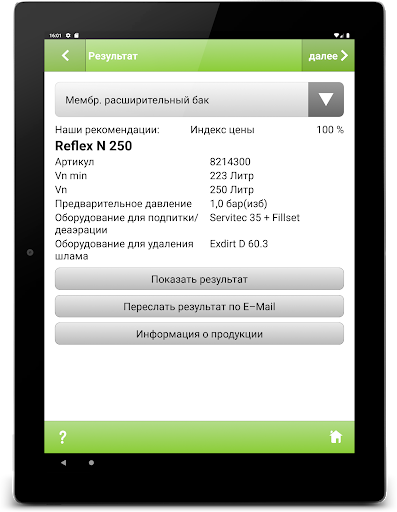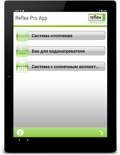 Теперь вы можете быстро решить вопрос регулирования давления в системе отопления и горячего водоснабжения, а также в системе солнечного горячего водоснабжения — даже если ваша котельная находится в темном подвале. С помощью приложения Reflex Pro можно проверить правильность расчета объема имеющихся расширительных баков, определить предварительное давление, какой объем теплоносителя понадобится для заполнения система, а также жесткость теплоносителя и подпиточной воды в соответствии с требованиями директивы VDI 2035. Идеально подходит для учета и обработки данных по проекту и гарантирует максимальную точность предварительного анализа и расчетов на объекте.