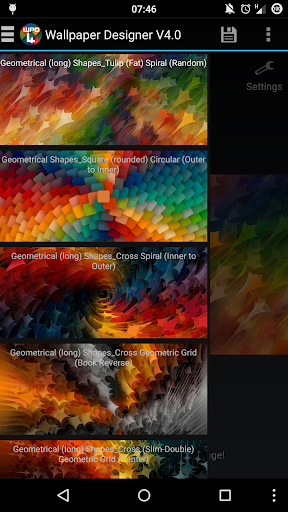 - «Сохранить» сохранит текущие обои в SDCard ../pictures/wallpaperDesigner