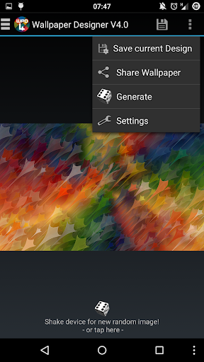 - в меню (3 точки) "Сохранить (с механизмом)" Сохранят текущие обои в SDCard ../pictures/wallpaperDesigner
