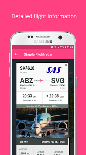 Веселитесь с простым приложением Flightradar! Чтобы больше беспокоиться о другом или члене семьи, как вы можете отслеживать свой авиалайнер с этим приложением. Приложение The Flight Tracker может использовать вашу позицию GPS, чтобы получить ваше текущее местоположение, поэтому вам не нужно каждый раз находить ваше местоположение в приложении отслеживания рейса. Отказ Нажмите на значок воздушного самолета, чтобы получить информацию о рейсе.