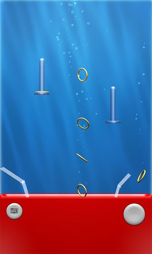 By pushing the bubble shoot button, you shoot or pump bubbles into the water. Let the six golden rings dance and try to get them on the two blue sticks.
