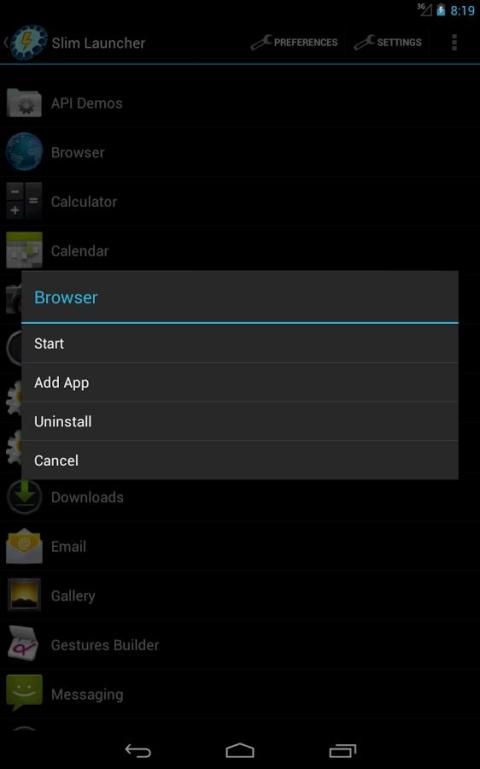 Slim Launcher - это удобное приложение, которое заменяет рабочий стол на твоём телефоне или планшете. Удобно оно, потому что позволяет настроить количество иконок по твоему желанию и практически не расходует батарейки. Важнейшей установкой является количество иконок на рабочем столе. Оно оптимально как для телефонов различных размеров, так и для планшетов с большими экранами. Ты определяешь сам, сколько приложений/иконок ты желаешь видеть на рабочем столе. Место на экране используется крайне оптимально - видны лишь иконки.