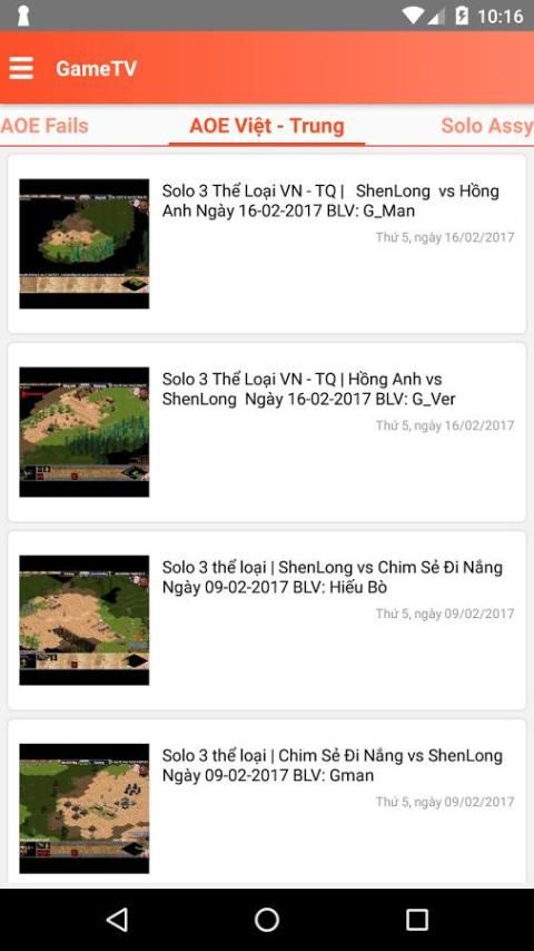 Приложение постоянно обновляет AoE известным геймером Матч Вьетнама, как воробей Go Солнечный, гунны, Hoang Mai NHI, Хонг Ань ... а также против каждого пика с AOE китайской деревни.