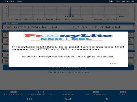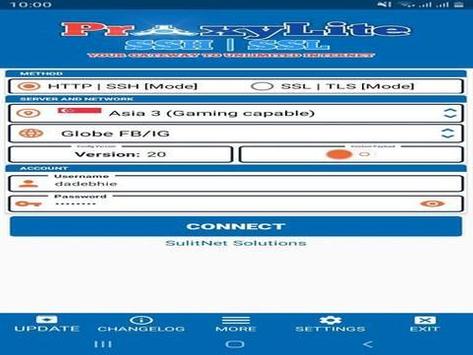 2. Run ProxyLite SSH SSL go to -> Input your username and password then connect to server and network you prefer