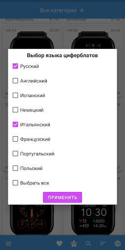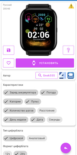 Можно купить подписку и убрать рекламу в приложении🚫 Можно отправить понравившийся циферблат в Избранное, нажав на сердечко рядом с этим циферблатом, а далее посмотреть его нажав на сердечко в нижнем меню🤍 Можно посмотреть Топ 50 установленных циферблатов - за неделю, за месяц и за всё время🔝Так же можно отфильтровать циферблаты по необходимым параметрам, которые вы хотите, чтобы отображались на циферблате🔍 Можно отсортировать циферблаты по дате добавления или по количеству установок 📶 А ещё можно выбрать язык циферблата 🌐 И последнее. Под значком трёх полос в левом нижнем углу есть немного дополнительных функций, которые могут вам пригодится, поэтому загляните ☺️