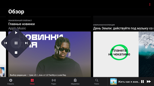 * Открыть панель управления мультимедиа (с воспроизведением, паузой, остановкой, следующей / предыдущей дорожкой)