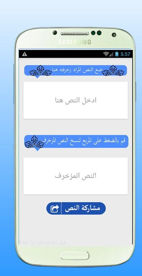 زخرفة الكتابة و زخرفة كتابة على كيفك يوجد العدد من اشكال النصوص و الزخارف و زخرفة احترافية و كما التطبيق يدعم الاوان و مميزة زخرفة الاسماء و رموز و اشكال زخرفة الفيس بوك و زخرفة خط الفيس بوك زخرفة انجليزي و انجيليزي معرب و كما يمكنك من خلال البرنامج تشكيل الحروف و حروف مزخرف كما ترغب لا تتردد في تحميل التطبيق زغرفه تستطيع من خلال البرنامج تشكيل الكلمات و تشكيل البرودكاست يمكن نسخ النص عن طريق الضغط على زر النسخ او مشاركة النص على مواقع التواصل الاجتماعي مثل فيس بوك وتطبيقات التواصل مثل واتس أب وفيس بوك ويوجد في صور التطبيق صور تبين ذلك, كما يمكن ا ن تستخدم النصوص المزخرفة لإرسالها رسائل جوال مزخرفة للأصدقاء و مشاركتها عبر الفيس بوك كمنشور مزخرف