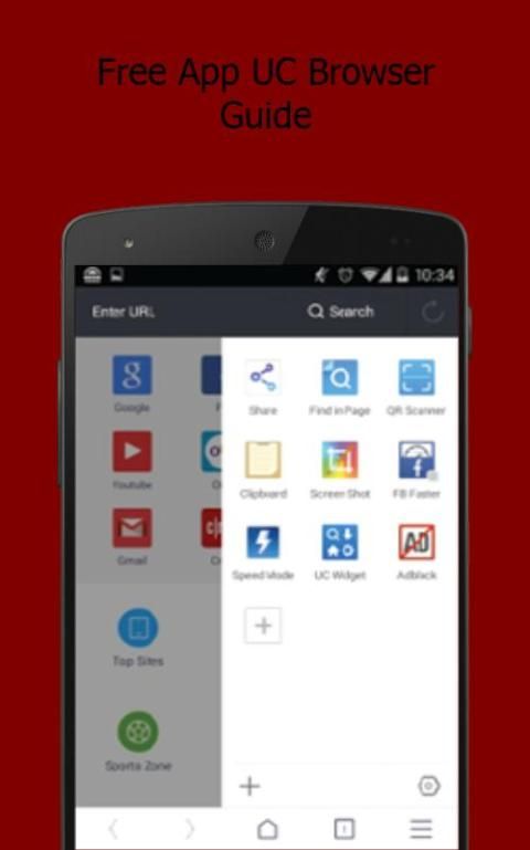UC Browser это быстрый веб-браузер подходит для мобильных устройств, таких как Android. Он использует облако ускорение чтобы ускорить процесс. Это приложение имеет более высокую стабильность, ночной режим, Мультитач, умные предложения, кнопка действия громкости, RSS-ридер и многое другое. UC Browser Guide Free App