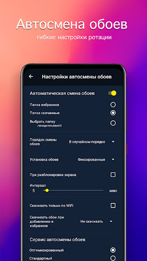• Настройка качества обоев и превью, для экономии трафика