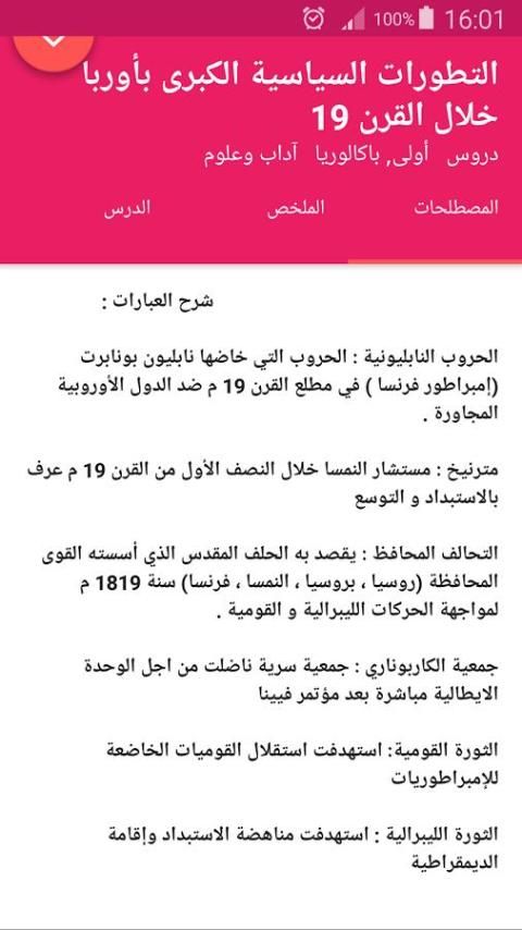Уроки первого бакалавриата это бесплатное приложение без Интернета содержит обучающие и резюме упрощенных и простых в сохранить, уроки, как французские, английский, исламское образование, арабский язык, истории, география, науки о жизни, и земли, и математику ..., позволит этому приложению, чтобы узнать и подготовить Aljiv уроков первого года бакалавриат всех люди, в том числе уроков первой понижающей литературы, уроки первой понижающей экспериментальной науки, уроки первых понижающей физической науки, и уроков первого затраченных наук о жизни и земле, благодаря урокам описаны Джат профессорами аккредитованных и высокоэффективными в области преподавания, благодаря резюме и упрощенные уроки для каждых Алл Y и студентов.