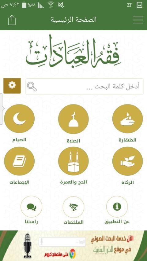 تطبيق شامل مجاني للموسوعة الفقهية - قسم العبادات -, يحوي جميع الإمكانات والمميزات الموجودة بالموسوعة في موقع الدرر السنية.
