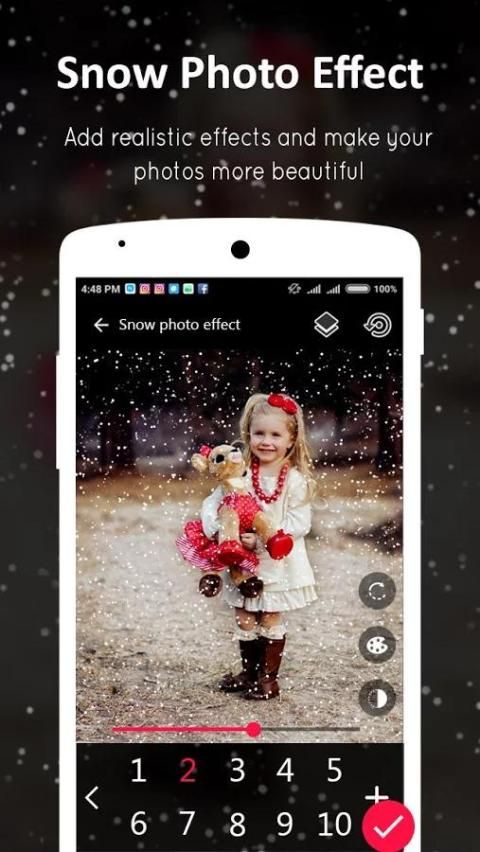 • Есть 10+ снег и зимние фильтры, которые позволяют имитировать снег, метель, молния, капли дождя, и Starlight эффекты