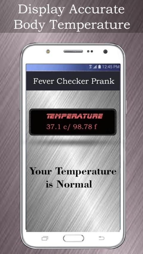 Эта лихорадка шашка это просто шалость приложение, оно не в состоянии рассчитать реальную лихорадку. Он опирается только случайный результат температуры тела. Эта лихорадка проверка может быть просто для удовольствия и развлекательных целей.
