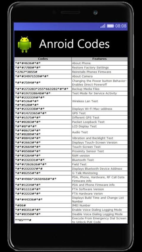 Секретные коды для Android предоставить вам несколько кодов для единственной цели. Секретный код для андроид устройств обеспечивает коды набора вместе с телефонными кодами и секретным меню. Секретные коды для всех мобильных телефонов обеспечивают дозвон коду со специальными скрытыми кодами в виде цифр и символов. Секретные коды для Android вводится для специальных целей, набор операций. В основном люди не знают о секретных кодах для андроида, так как эти скрытые коды дают вам несколько кодов для для секретного меню. Коды набора номера делают полный доступ к скрытой информации. Секретные коды для мобильных телефонов также предоставляют коды набора для IMEL и другой скрытой информации и доступа к системным инструментам и использованию.