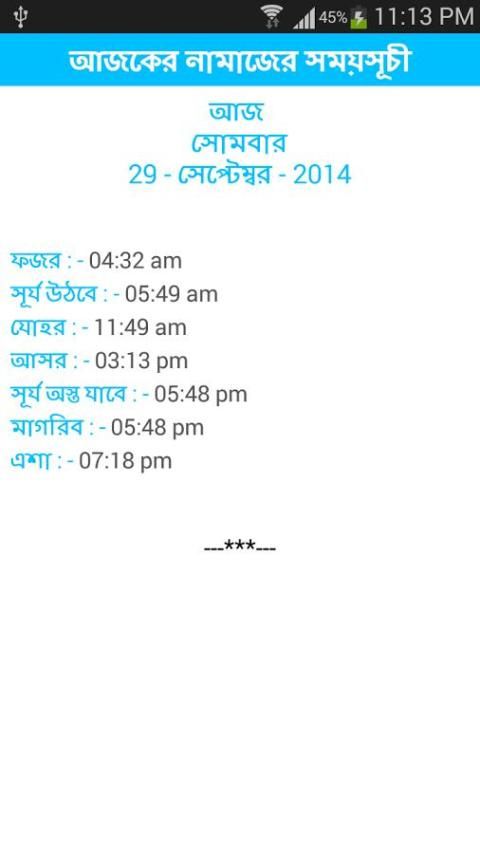 7) নামাজের সময়সূচী (আপনি পৃথিবীর যেকোনো যায়গার নামাজের সময়সূচী পাবেন)