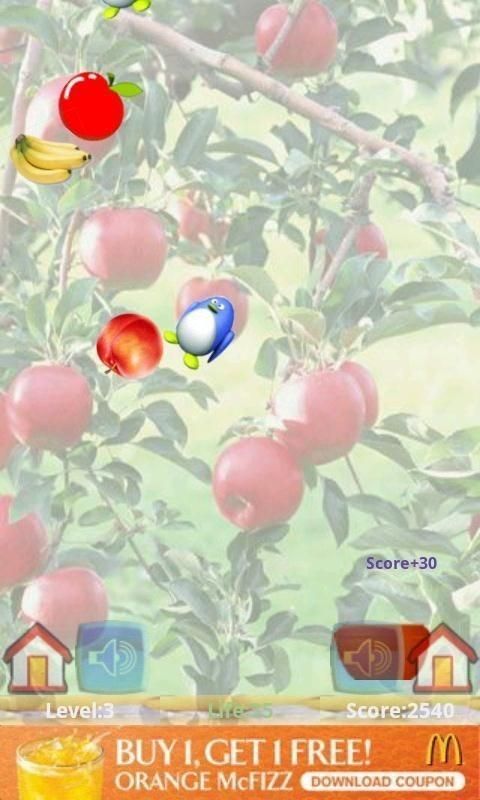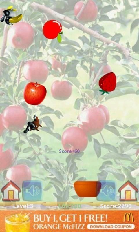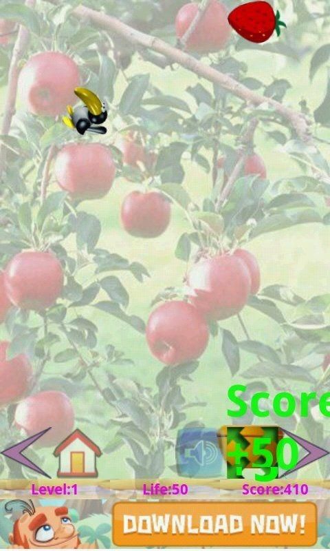Fruit Harvest Looking for a simple but entertaining game? Try the Fruit Harvest app. Fruit Harvest is a fun arcade game for your Android device. Simply catch all the falling fruits on your screen by tilting your device to earn a score. As your score gets higher, the fruits fall faster. Multiple fruits fall after you reach 1,000 points. Give Fruit Harvest a try and enjoy an entertaining game that will surely get you hooked. Please note that this app is ad-supported. - Catch different types of fruits - Test your agility by catching multiple fruits at once - Enjoy a simple and entertaining game Tilt the phone or tablet to move the basket to catch the falling fruits. If you catch it, score will be increased, otherwise, life will be decreased. Every 1000 increased on score, one more fruit comes out. At the meantime, you have to avoid the animals which will destroy your life when your basket holds them.