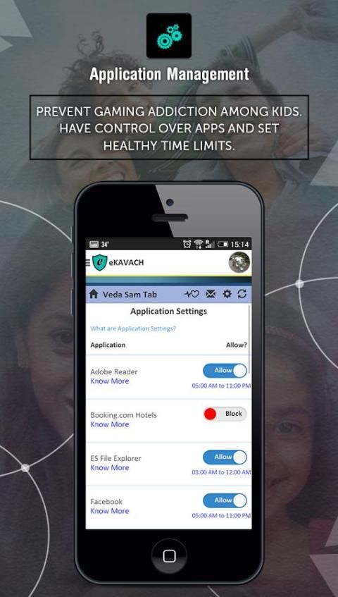 eKAVACH является самым передовым родительский контроль приложений Индии для Android, который обеспечивает полную защиту семьи и онлайн-безопасности для детей. Родители могут контролировать веб-фильтрации контента на планшетных ПК детские игровая и сотовые телефоны, чтобы обеспечить безопасный опыт браузера, блокировать порнографию, удаленно контролировать устройства малыша, контролировать время экрана и управлять приложениями.
