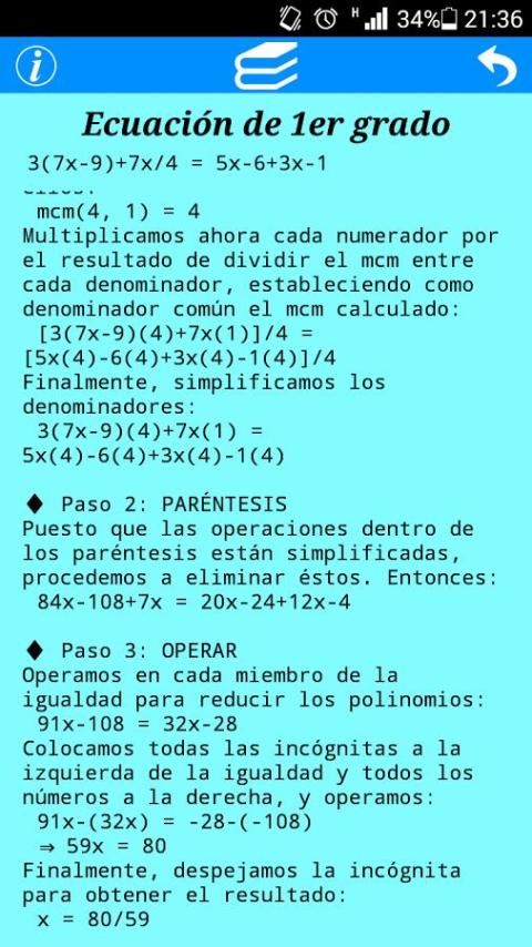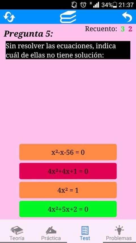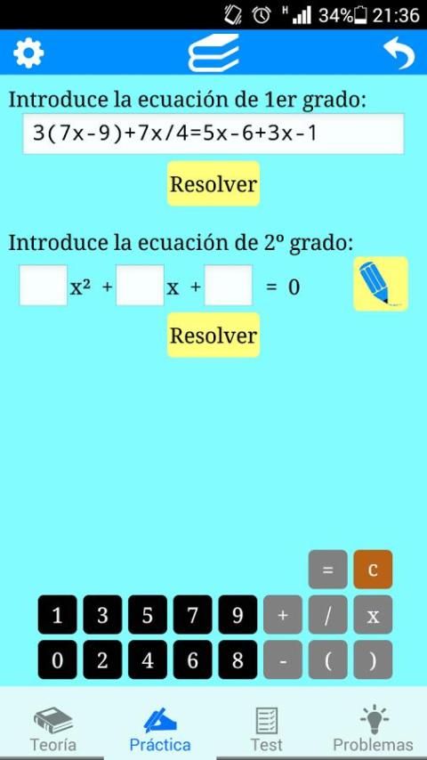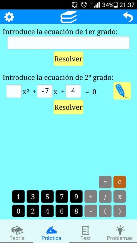 - Практика: позволяет решать уравнения первой и второй степени, обеспечивая график функции, связанной с уравнением последней, и геометрическая интерпретация этого.