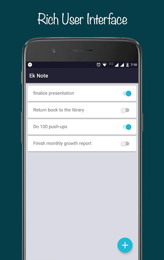 Eknote helps you in reminding things you need to do through the help of Notifications. The reminder doesn't pop-up or rings, it just sits there and still does it's job most efficiently.
