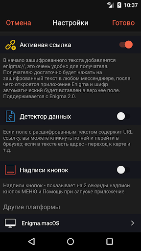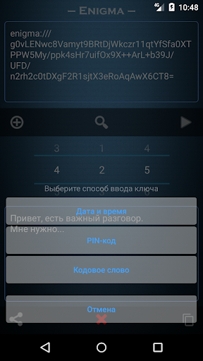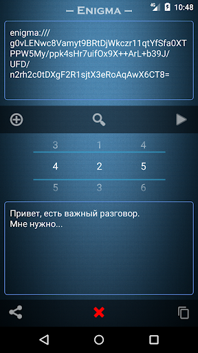 Приложение Enigma может быть использовано для шифрования данных представляющих ценность только в режиме ключа "Кодовое слово", подобрать ключ в этом случае гораздо сложнее чем когда ключ состоит из трёх цифр.
