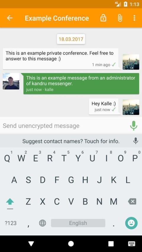 В течение многих лет, все больше и больше Коммуникатор выйти на рынок. Мы не видим себя как конкурирующие с WhatsApp, threema или другими крупными коммерческими мессенджерами. Мы убеждены в том, что открытая и свободная инфраструктура может работать каждый сам по себе гораздо лучше, чем в центральном хранилище всех данных. Мы предоставляем Вам KandruIM бесплатно с друзьями, чтобы оставаться на связи - совершенно не зависит от каких-либо коммерческих интересов. Мы только хранить самые необходимые данные и не анализирует ваши разговоры. Конфиденциальность очень важна для нас!