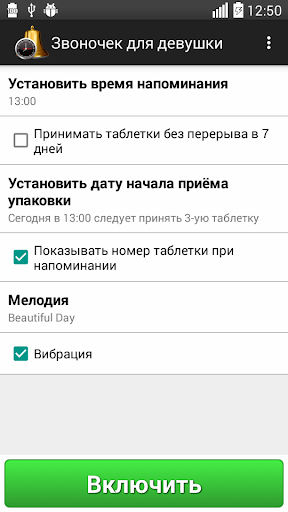 Установите настройки один раз, и вам не нужно будет каждый раз устанавливать будильник, чтобы не пропустить прием противозачаточной таблетки.