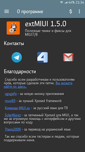 Набор полезных твиков и исправлений для MIUI7/8. Необходим Xposed framework (без него приложение не даст никакого эффекта).