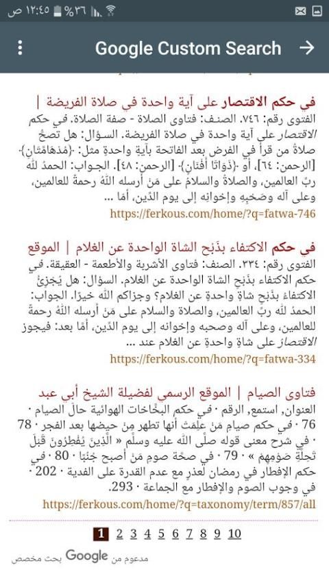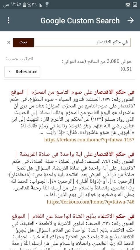 Приложение, которое имеет быстрый и непосредственный поисковик ищет в фетвых Шейх Мухаммад Али Ferkous из его должностного лица