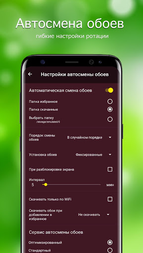 • Автоматическая смена заставки с заданным интервалом (живые обои цветы)