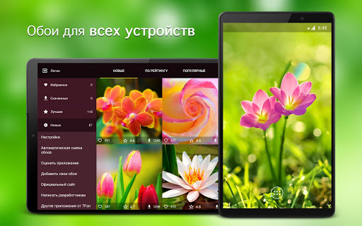 У нас все обои "цветы" проходят жесткую фильтрацию перед добавлением, что гарантирует великолепное качество картинок. Обои подбираются под каждое устройство индивидуально. Вам будут представлены только картинки с цветами, которые будут идеально смотреться в качестве заставки на экране именно вашего телефона или планшета.