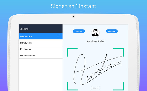 Откройте для себя обучение Bienvenue. ПолемНет больше бумажных листов! в реальном времени и синхронизация между устройствами. .> • Быстрый и интуитивно понятный контроль подписи.