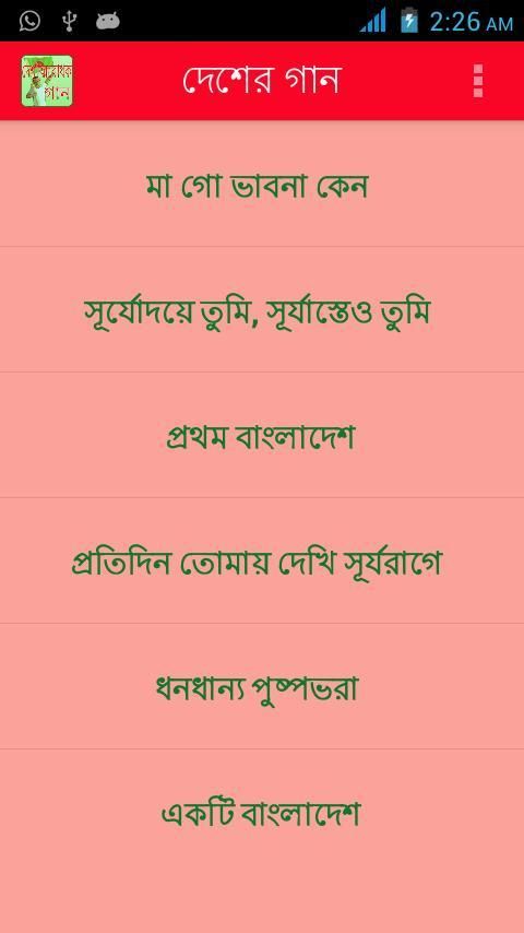 195 бенгальский язык через язык движения и освободительной войны в 1971 году, был приобретен в обмен на Бангладеш сегодня. Бангладеш 1 февраля, 6 марта, 16 декабря будет никогда не исчезает, патриотического движения preranadanakari ganagula достоин народа каждого. Песня вдохновит патриотизм напоминают те подвиги солдат. Друзья классических патриотических песен с приложением Единства Millennium Music (тексты песен и adiosaha).