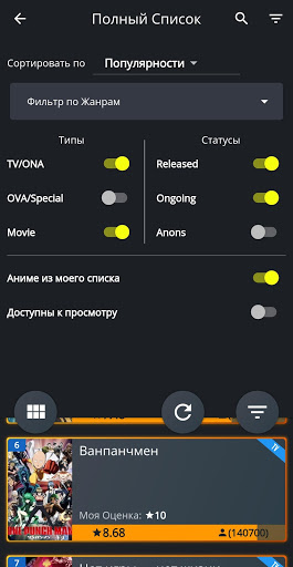 Приложение в котором можно удобно вести свой список аниме, а также подбирать что-то новое к просмотру на его основе.