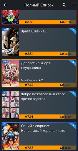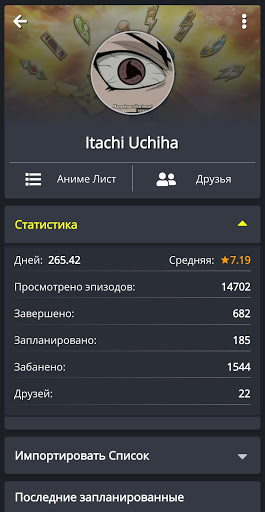 - Добавление в друзья для отслеживания списков других людей и советов аниме