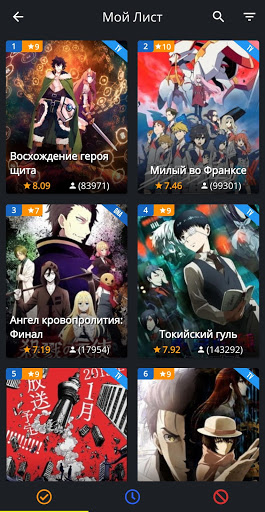 - Возможность составлять списки просмотренных, запланированных и отложенных тайтлов.