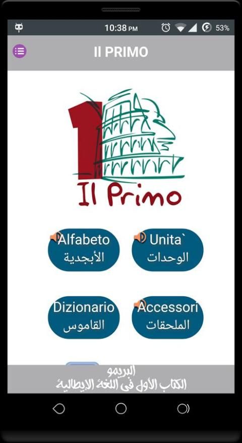 Животные, цвета и функции, написанные на итальянском и переведенных названий на арабском языке, на котором говорят на итальянском языке ясно и звука.