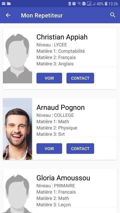 Ainsi l’élève concerné pourrait facilement se trouver un répétiteur selon ses besoins, ses ressources et sa localité ou encore ; le parent nécessiteux pourrait dans ce cas utiliser cette plateforme afin de trouver un répétiteur de qualité pour son ou ses enfants sur la base des objectifs préétablis. Ce produit n’est qu’à sa première phase et nous travaillons afin de fournir une expérience utilisateur de qualité et de nouvelles fonctionnalités dans un futur très proche afin d’être à la pointe de la technologie.