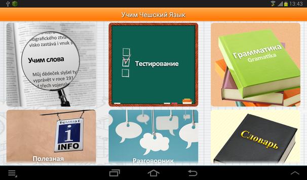 В программу входят уроки, тесты, разговорник, словарь чешско-русский и русско-чешский, грамматика, полезная информация по Чехии и Праги в отдельности,карта с лучшими достопримечательностями и все это не требует подключения к интернету!!!