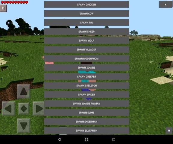In this mod you can control your game to a greater extent. It is simple to use with the help of a new graphical user interface which is accessed by tapping on the MCG button in the bottom-right corner. Using the buttons you can do everything from spawning yourself vanilla items, set the gamemode and time and access a special menu tab with fun options such as explode and mob riding.