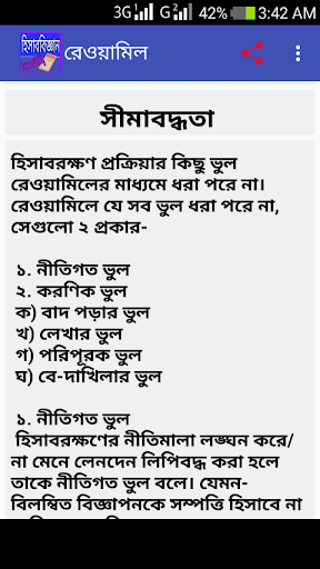 Business studies বা ব্যবসায় শিক্ষা বিভাগের জন্য হিসাব বিজ্ঞান অনেক গুরুত্ব পূর্ণ বিষয়,হিসাব বিজ্ঞান বিষয়ে ভালো করতে হলে এর সম্পর্কে ভালো করে জানতে হবে,হিসাব বিজ্ঞান অংকে ভালো করতে হলে এর প্রত্যেকটি অধ্যায় অঙ্কের ফর্মুলা গুলো জানতে হবে।।হিসাব বিজ্ঞান Accounting ভালো করলে যে কোন বিশ্ববিদ্যালয়,চাকরির পলিক্ষায় চান্স পাওয়া সহজ হয়।আর তাই হিসাববিজ্ঞান সম্পর্কে ভালো ধারনা থাকতে হবে।হিসাববিজ্ঞানের ধারণা,প্রকাভেদ,ব্যবহার সম্পর্কে জানতে হবে।এছাড়া হিসাববিজ্ঞানের সাথে সম্পর্কিত বিভিন্ন অধ্যায় যেমনঃলেনদেন,হিসাব,হিসাবচক্র,জাবেদা,খতিয়ান,রেওয়ামিল,বিনিময়বিল ইত্যাদি বিষয়ে সাম্যক জ্ঞান থাকতে হবে।accounting হিসাব বিজ্ঞান এর এ সকল অধ্যায় ছাড়াও আরও অনেক অধ্যায় গুলো আমাদের এ্যাপটিতে সংযোজন করা হয়েছে।যার মাধ্যমে খুব সহজে যেকোন সময় যে কোন জায়গায় আপনি অনুশীলন করতে পারবেন।এছাড়া আপনার হিসাব বিজ্ঞান সম্পর্কে যত নৈর্ব্যক্তিক বা MCQ প্রশ্ন বা IQ Test এ ভালো করতে পারবেন।
