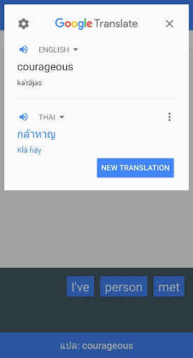 เมื่อติดตั้ง Google Translate แล้ว หากคุณไม่ทราบความหมายของคำศัพท์แต่ละคำ ในขณะที่คุณกำลังฝึกประโยค คุณสามารถทำการแปลคำศัพท์นั้นๆได้ โดยการกดค้างที่ "คำศัพท์นั้นๆ" เพื่อแปลคำศัพท์ดังกล่าว