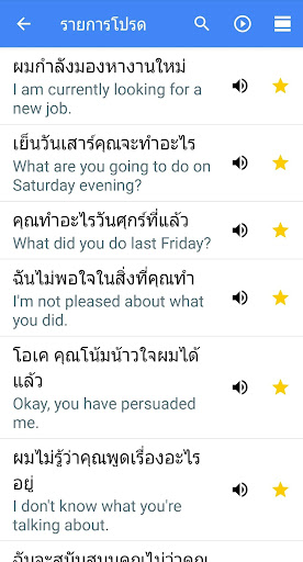 คุณสามารถบันทึกประโยคภาษาอังกฤษและวลีโปรดของคุณได้โดยการเลือกดาวที่อยู่ข้างหน้าประโยคใดๆในแอป