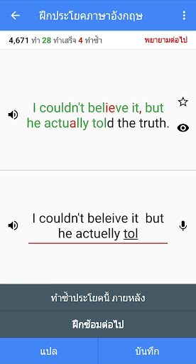 หากคุณพบประโยคที่ไม่ถูกต้องหรือมีปัญหาในแอป โปรดใช้ฟีเจอร์รายงานปัญหาในแอป จะส่งข้อมูลทั้งหมดให้เราตรวจสอบและแก้ไขตามที่จำเป็น